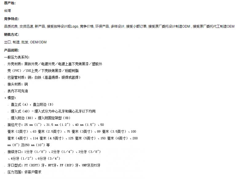 SHINKEG 普通压力表系列